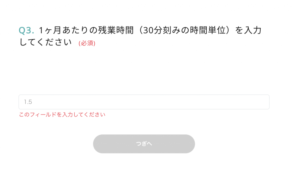 【数値入力】 1ヶ月あたりの残業時間(時間単位)を入力してください