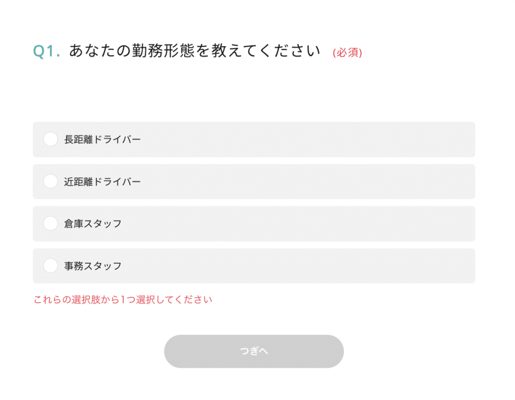 マトリクス設問により、職種・項目ごとの満足度を即座に比較。長距離ドライバーの「労働時間の適切さ」と倉庫スタッフの「給与水準」が圧倒的に低いことが判明したため、この2点に予算とリソースを集中投下する意思決定を速やかに行うことができました。