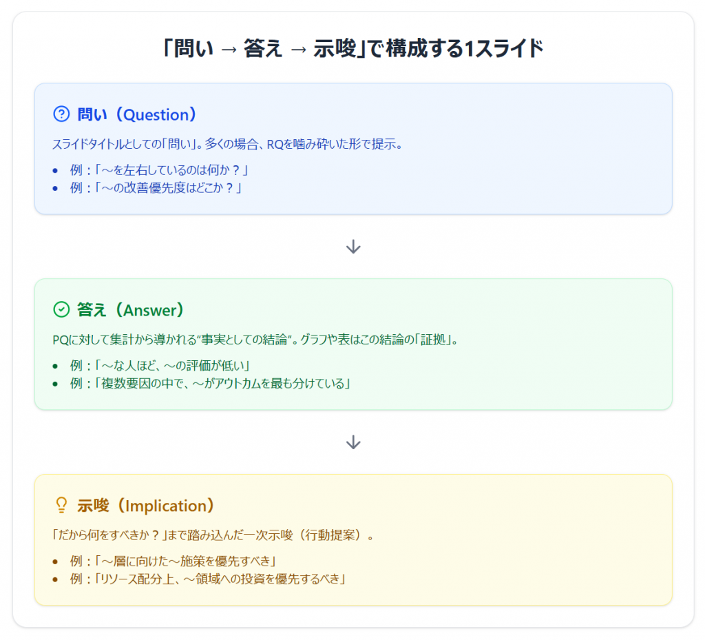 「問い → 答え → 示唆」という1枚のスライドに落とし込むための考え方と手順